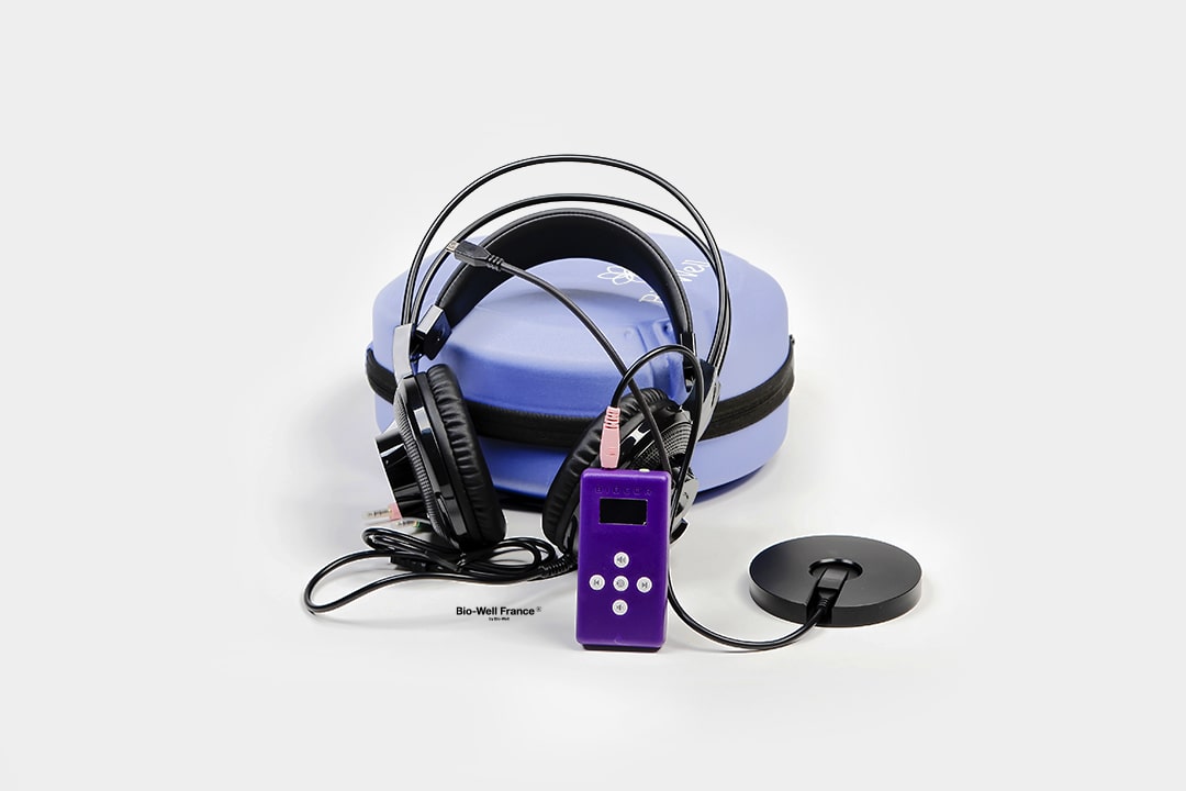Los cascos Bio-Cor son un dispositivo de terapia de frecuencias, generadas especialmente en base a los desajustes del usuario, y cuentan con un electrodo que puede conectarse a nuestra botella para informar el agua. Se trata de un dispositivo de corrección del campo energético humano que utiliza información extraída de los dedos con la cámara GDV Bio-Well.